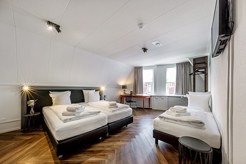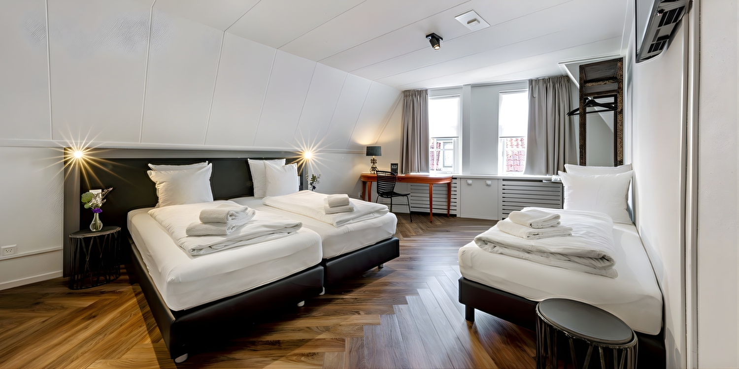 Samen op pad? Onze driepersoonskamer (24 m²) is ideaal voor gezinnen met een kind, collega’s of vrienden die samen willen overnachten in Oudewater. De kamer is slim ingedeeld, licht, comfortabel en voorzien van alles wat je nodig hebt voor een ontspannen verblijf.