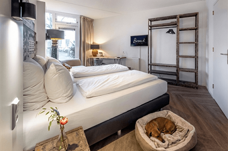 Broeck is een hip en gastvrij hotel met 24 kamers, een Grand Café, serre en arrangementen die aansluiten bij een rustige overnachting of een actief weekend. Je wandelt bij ons vanuit een sfeervol straatje zó het charmante centrum van Oudewater in, klein, mooi en verrassend levendig.