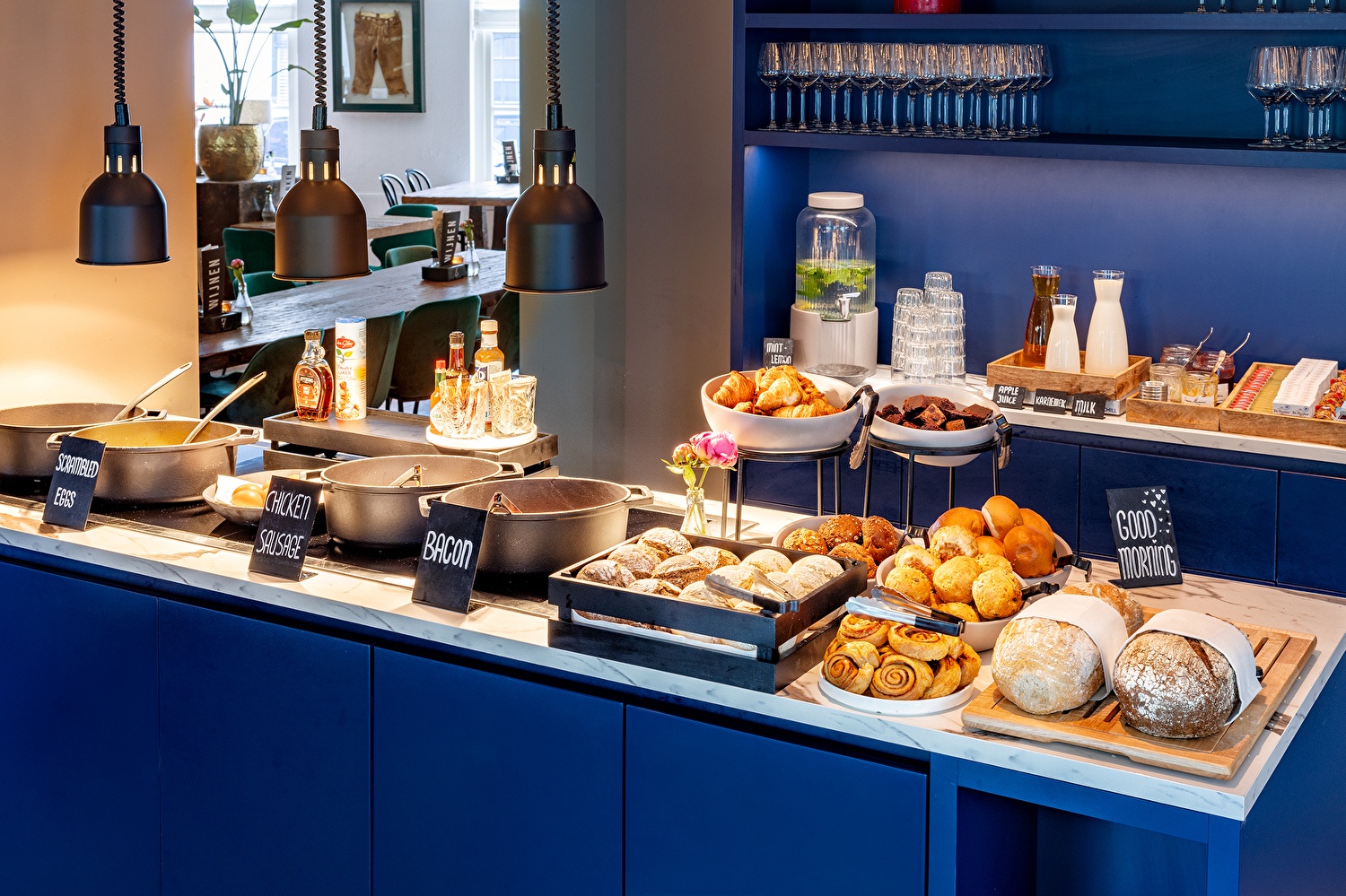 Hotelgasten kunnen het ontbijt eenvoudig toevoegen tijdens het boeken. Geen hotelgast? Geen probleem, ook dan ben je van harte welkom om aan te schuiven.